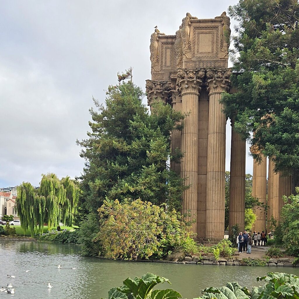 The last stop we made after Muir Woods was to the Palace of Fine Arts located just outside the Presidio. Since it was so close to our hotel, it was an easy decision to stop by and explore the outside grounds. Here, it feels like you’ve stepped back in time, in a far off land.