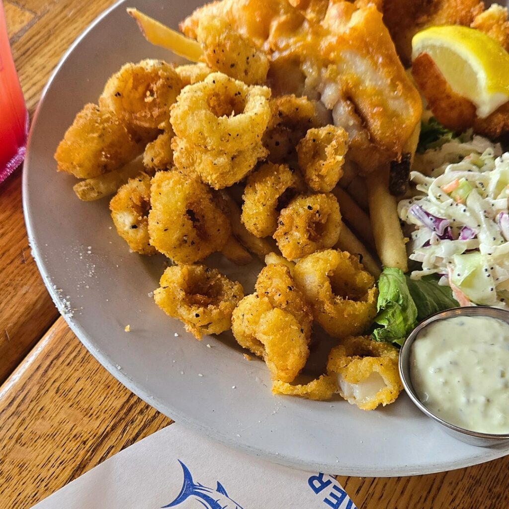 Food-wise, we enjoyed some shared apps at Pier Market and were able to snag a table with water views. We got the Sour Dough Garlic Bread and the Fisherman’s Platter, a perfect amount of food to share for the three of us.